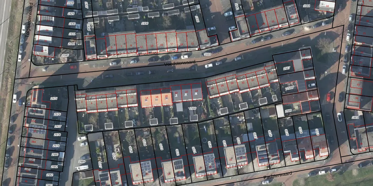 Het perceel waarop Voedsterwaard 22 staat heeft een oppervlakte van 2538 m². Dit is een zeer groot perceel. De perceeloppervlakte wordt geregistreerd door het Kadaster. Gedetailleerde informatie over de maten van dit perceel kunt u vinden in het rapport Kadastrale kaart met maatvoering van Voedsterwaard 22.