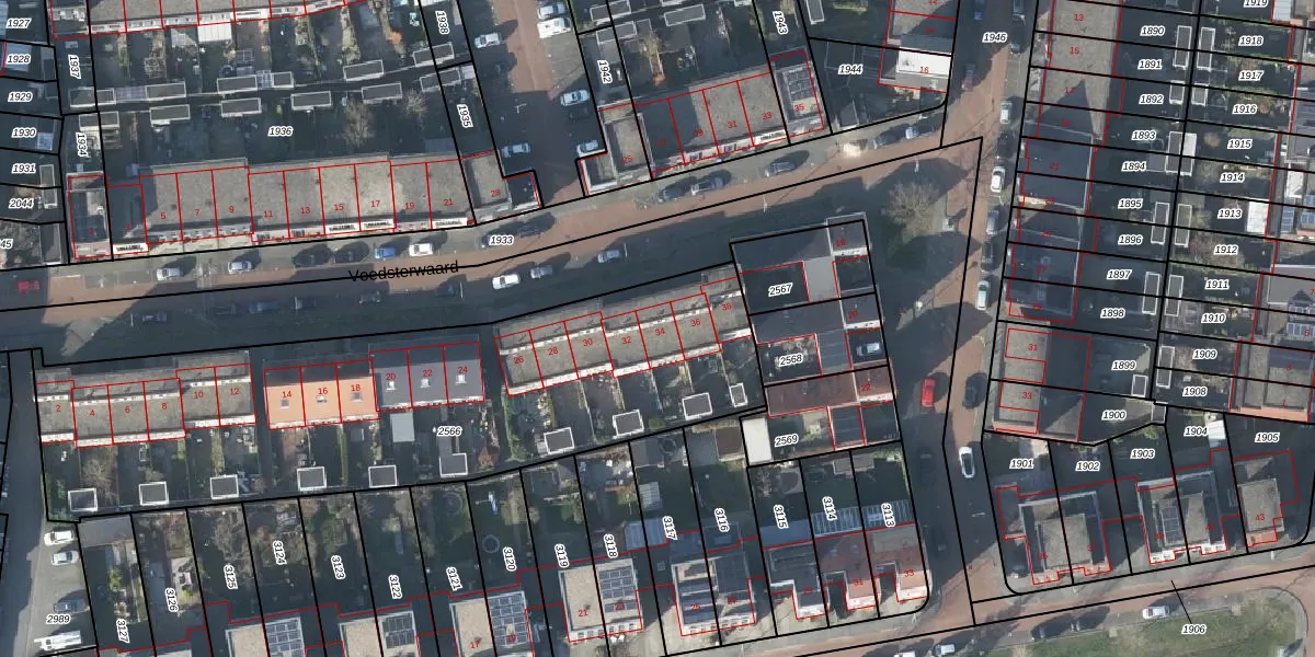 Het perceel waarop Voedsterwaard 34 staat heeft een oppervlakte van 2538 m². Dit is een zeer groot perceel. De perceeloppervlakte wordt geregistreerd door het Kadaster. Gedetailleerde informatie over de maten van dit perceel kunt u vinden in het rapport Kadastrale kaart met maatvoering van Voedsterwaard 34.