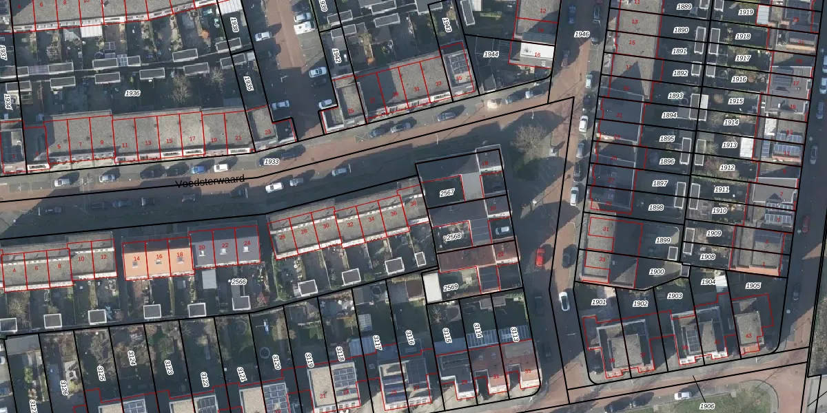 Het perceel waarop Voedsterwaard 38 staat heeft een oppervlakte van 2538 m². Dit is een zeer groot perceel. De perceeloppervlakte wordt geregistreerd door het Kadaster. Gedetailleerde informatie over de maten van dit perceel kunt u vinden in het rapport Kadastrale kaart met maatvoering van Voedsterwaard 38.
