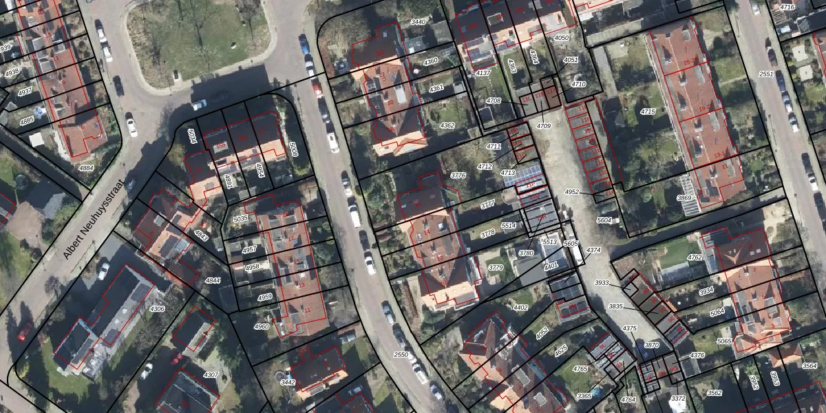 Het perceel waarop Voermanstraat 16 staat heeft een oppervlakte van 556 m². Dit is een groot perceel. De perceeloppervlakte wordt geregistreerd door het Kadaster. Gedetailleerde informatie over de maten van dit perceel kunt u vinden in het rapport Kadastrale kaart met maatvoering van Voermanstraat 16.