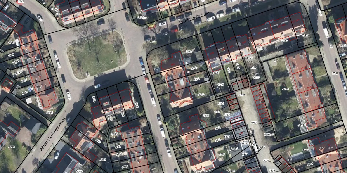 Gebruik de zoekbalk of klik op een perceel voor informatie over de adressen binnen dit perceel.