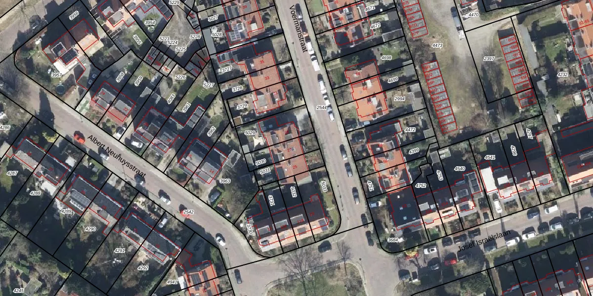 Het perceel waarop Voermanstraat 27 staat heeft een oppervlakte van 143 m². Dit is een middelgroot perceel. De perceeloppervlakte wordt geregistreerd door het Kadaster. Gedetailleerde informatie over de maten van dit perceel kunt u vinden in het rapport Kadastrale kaart met maatvoering van Voermanstraat 27.