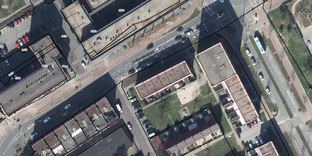 Het perceel waarop Volkerakstraat 58 staat heeft een oppervlakte van 7640 m². Dit is een zeer groot perceel. De perceeloppervlakte wordt geregistreerd door het Kadaster. Gedetailleerde informatie over de maten van dit perceel kunt u vinden in het rapport Kadastrale kaart met maatvoering van Volkerakstraat 58.