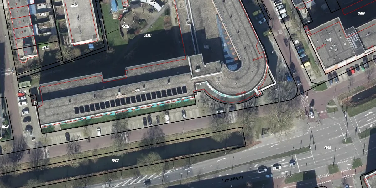 Het perceel waarop Waalstraat 36-1 staat heeft een oppervlakte van 7390 m². Dit is een zeer groot perceel. De perceeloppervlakte wordt geregistreerd door het Kadaster. Gedetailleerde informatie over de maten van dit perceel kunt u vinden in het rapport Kadastrale kaart met maatvoering van Waalstraat 36-1.