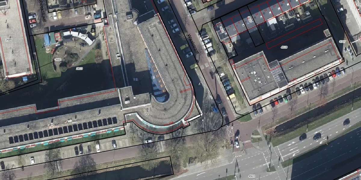 Het perceel waarop Waalstraat 36-133 staat heeft een oppervlakte van 7390 m². Dit is een zeer groot perceel. De perceeloppervlakte wordt geregistreerd door het Kadaster. Gedetailleerde informatie over de maten van dit perceel kunt u vinden in het rapport Kadastrale kaart met maatvoering van Waalstraat 36-133.
