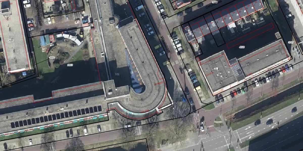 Het perceel waarop Waalstraat 36-135 staat heeft een oppervlakte van 7390 m². Dit is een zeer groot perceel. De perceeloppervlakte wordt geregistreerd door het Kadaster. Gedetailleerde informatie over de maten van dit perceel kunt u vinden in het rapport Kadastrale kaart met maatvoering van Waalstraat 36-135.