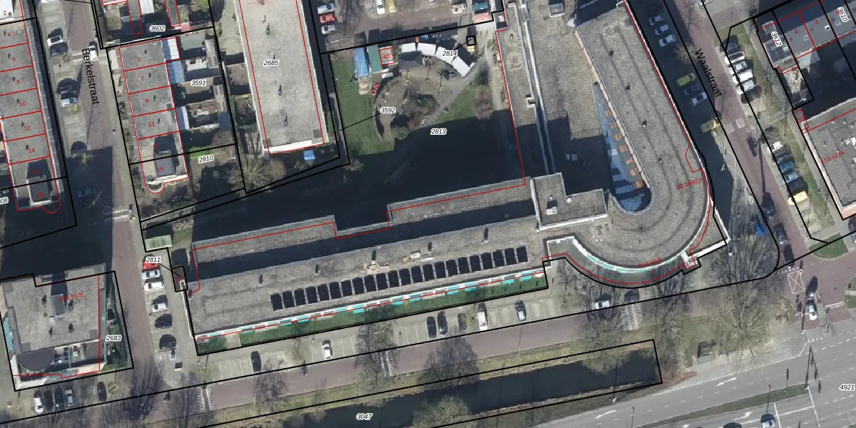 Het perceel waarop Waalstraat 36-208 staat heeft een oppervlakte van 7390 m². Dit is een zeer groot perceel. De perceeloppervlakte wordt geregistreerd door het Kadaster. Gedetailleerde informatie over de maten van dit perceel kunt u vinden in het rapport Kadastrale kaart met maatvoering van Waalstraat 36-208.