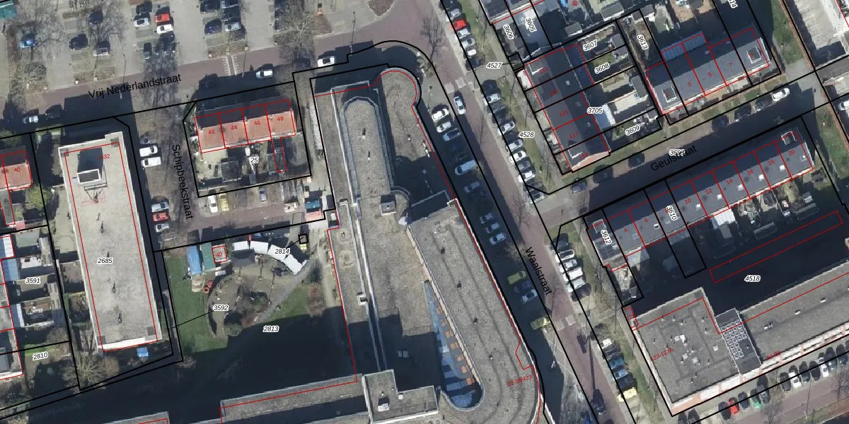 Het perceel waarop Waalstraat 36-251 staat heeft een oppervlakte van 7390 m². Dit is een zeer groot perceel. De perceeloppervlakte wordt geregistreerd door het Kadaster. Gedetailleerde informatie over de maten van dit perceel kunt u vinden in het rapport Kadastrale kaart met maatvoering van Waalstraat 36-251.