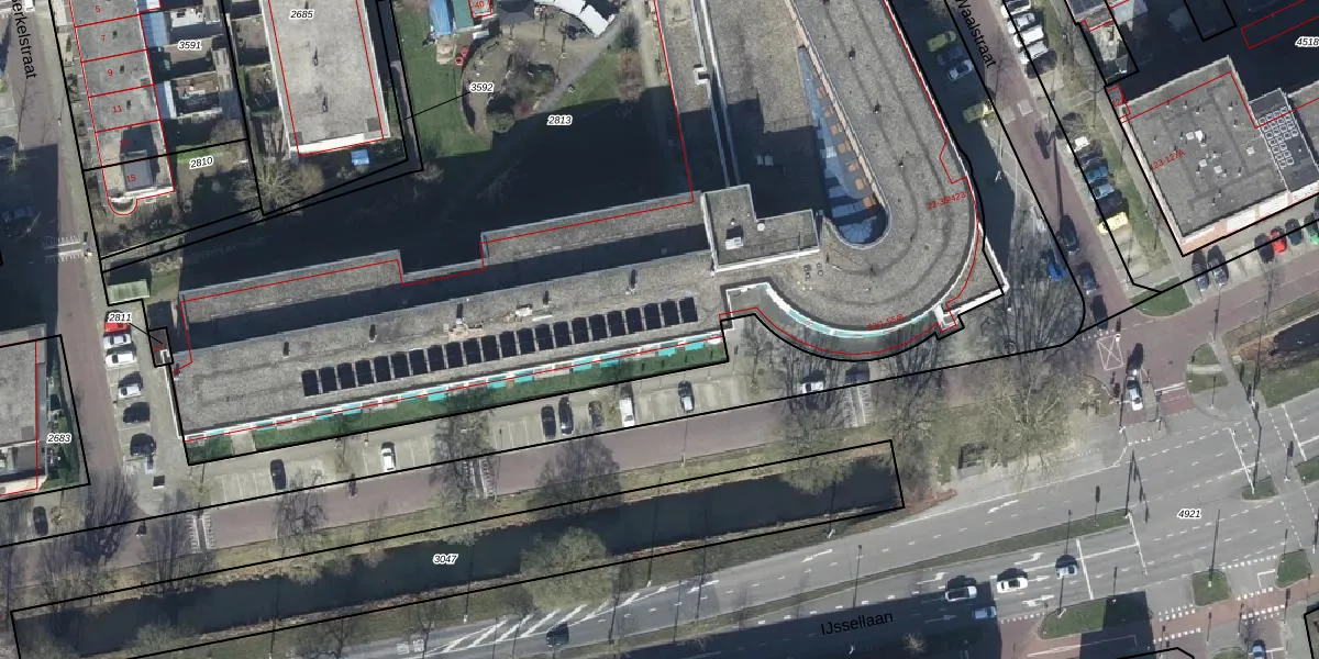 Het perceel waarop Waalstraat 36-303 staat heeft een oppervlakte van 7390 m². Dit is een zeer groot perceel. De perceeloppervlakte wordt geregistreerd door het Kadaster. Gedetailleerde informatie over de maten van dit perceel kunt u vinden in het rapport Kadastrale kaart met maatvoering van Waalstraat 36-303.