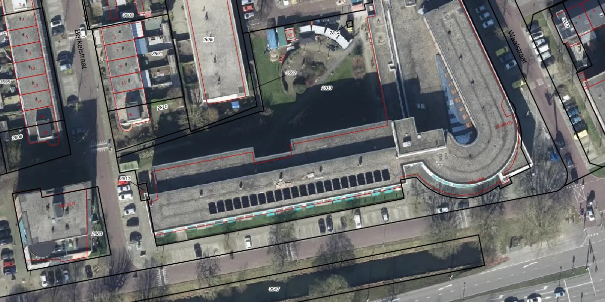 Het perceel waarop Waalstraat 36-310 staat heeft een oppervlakte van 7390 m². Dit is een zeer groot perceel. De perceeloppervlakte wordt geregistreerd door het Kadaster. Gedetailleerde informatie over de maten van dit perceel kunt u vinden in het rapport Kadastrale kaart met maatvoering van Waalstraat 36-310.