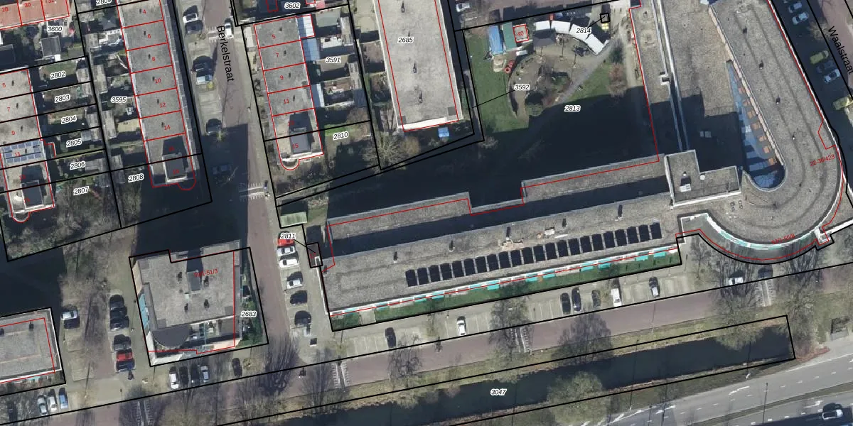 Het perceel waarop Waalstraat 36-314 staat heeft een oppervlakte van 7390 m². Dit is een zeer groot perceel. De perceeloppervlakte wordt geregistreerd door het Kadaster. Gedetailleerde informatie over de maten van dit perceel kunt u vinden in het rapport Kadastrale kaart met maatvoering van Waalstraat 36-314.