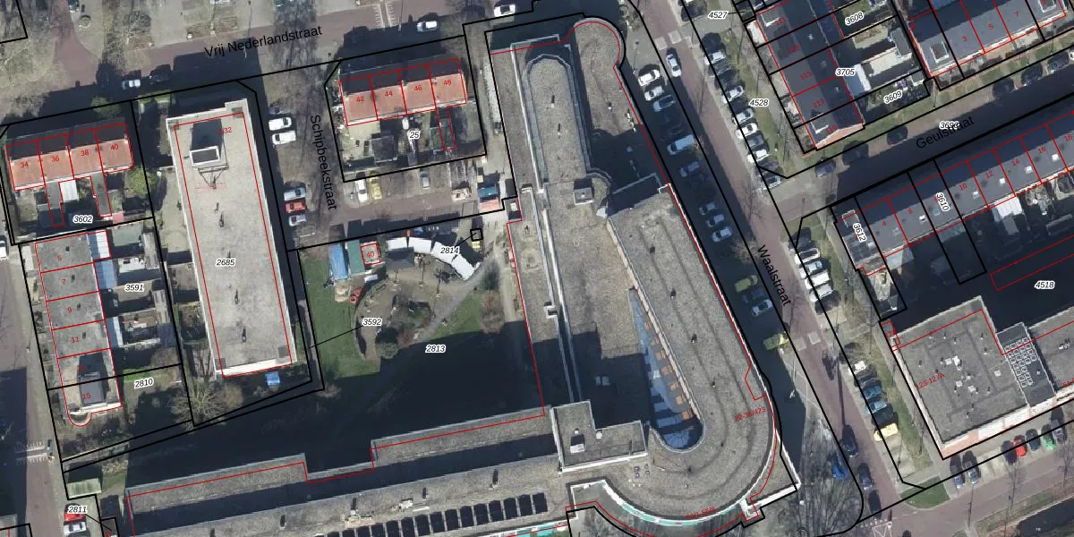 Het perceel waarop Waalstraat 36-35 staat heeft een oppervlakte van 7390 m². Dit is een zeer groot perceel. De perceeloppervlakte wordt geregistreerd door het Kadaster. Gedetailleerde informatie over de maten van dit perceel kunt u vinden in het rapport Kadastrale kaart met maatvoering van Waalstraat 36-35.