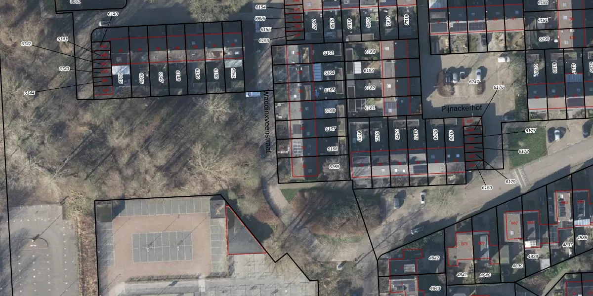 Gebruik de zoekbalk of klik op een perceel voor informatie over de adressen binnen dit perceel.