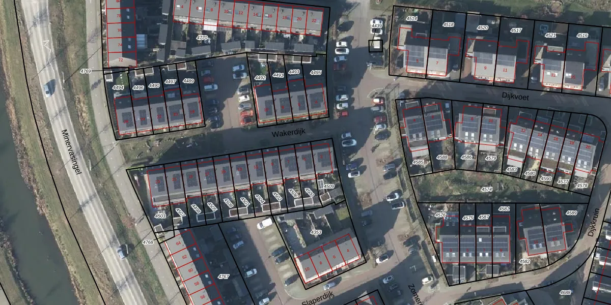 Het perceel waarop Wakerdijk 5 staat heeft een oppervlakte van 120 m². Dit is een middelgroot perceel. De perceeloppervlakte wordt geregistreerd door het Kadaster. Gedetailleerde informatie over de maten van dit perceel kunt u vinden in het rapport Kadastrale kaart met maatvoering van Wakerdijk 5.