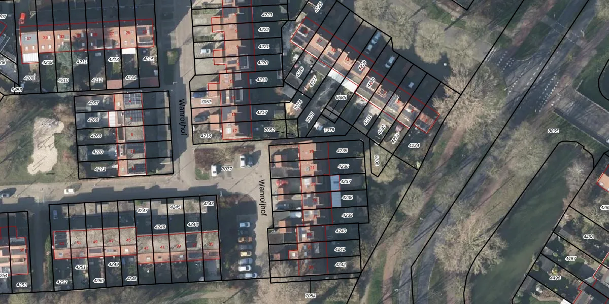 Gebruik de zoekbalk of klik op een perceel voor informatie over de adressen binnen dit perceel.
