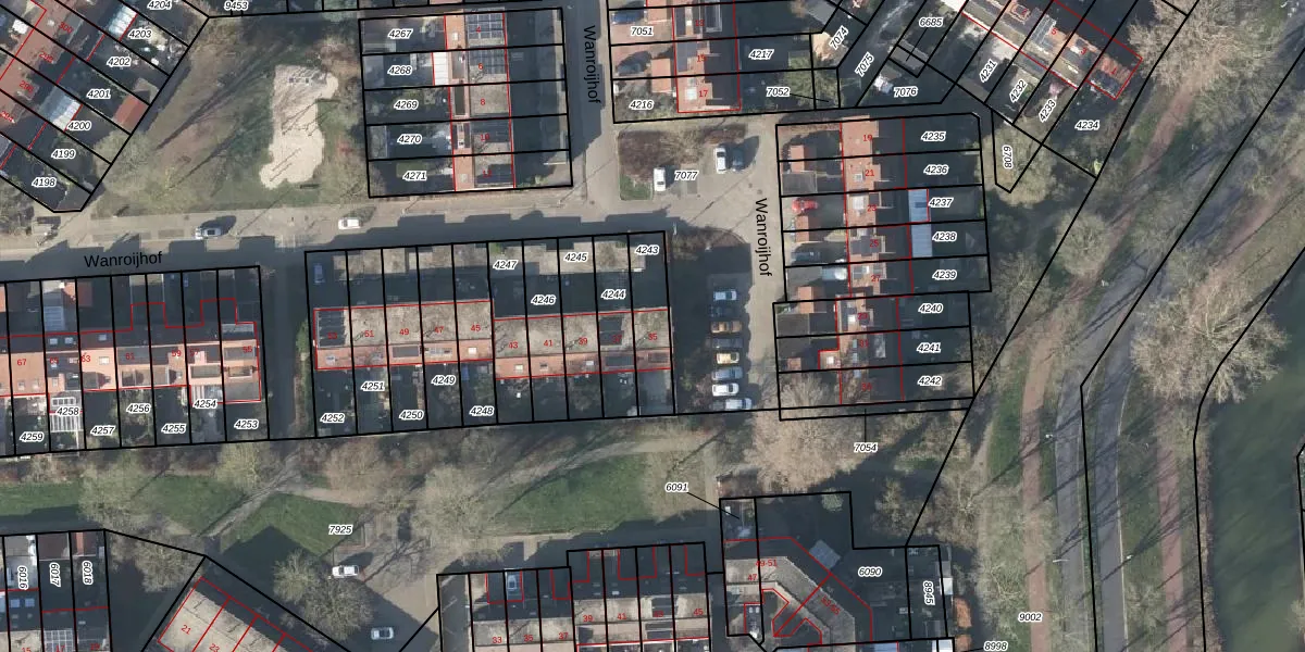 Het perceel waarop Wanroijhof 35 staat heeft een oppervlakte van 157 m². Dit is een middelgroot perceel. De perceeloppervlakte wordt geregistreerd door het Kadaster. Gedetailleerde informatie over de maten van dit perceel kunt u vinden in het rapport Kadastrale kaart met maatvoering van Wanroijhof 35.