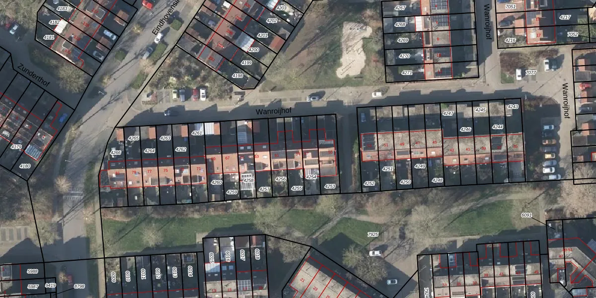 Het perceel waarop Wanroijhof 59 staat heeft een oppervlakte van 143 m². Dit is een middelgroot perceel. De perceeloppervlakte wordt geregistreerd door het Kadaster. Gedetailleerde informatie over de maten van dit perceel kunt u vinden in het rapport Kadastrale kaart met maatvoering van Wanroijhof 59.
