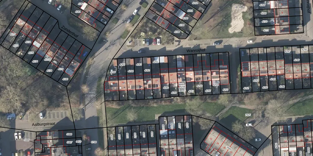 Gebruik de zoekbalk of klik op een perceel voor informatie over de adressen binnen dit perceel.