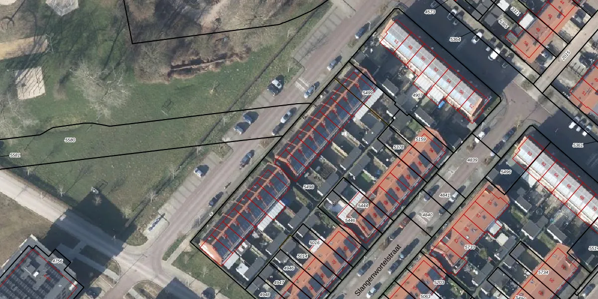 Het perceel waarop Watermuntstraat 63 staat heeft een oppervlakte van 2322 m². Dit is een zeer groot perceel. De perceeloppervlakte wordt geregistreerd door het Kadaster. Gedetailleerde informatie over de maten van dit perceel kunt u vinden in het rapport Kadastrale kaart met maatvoering van Watermuntstraat 63.