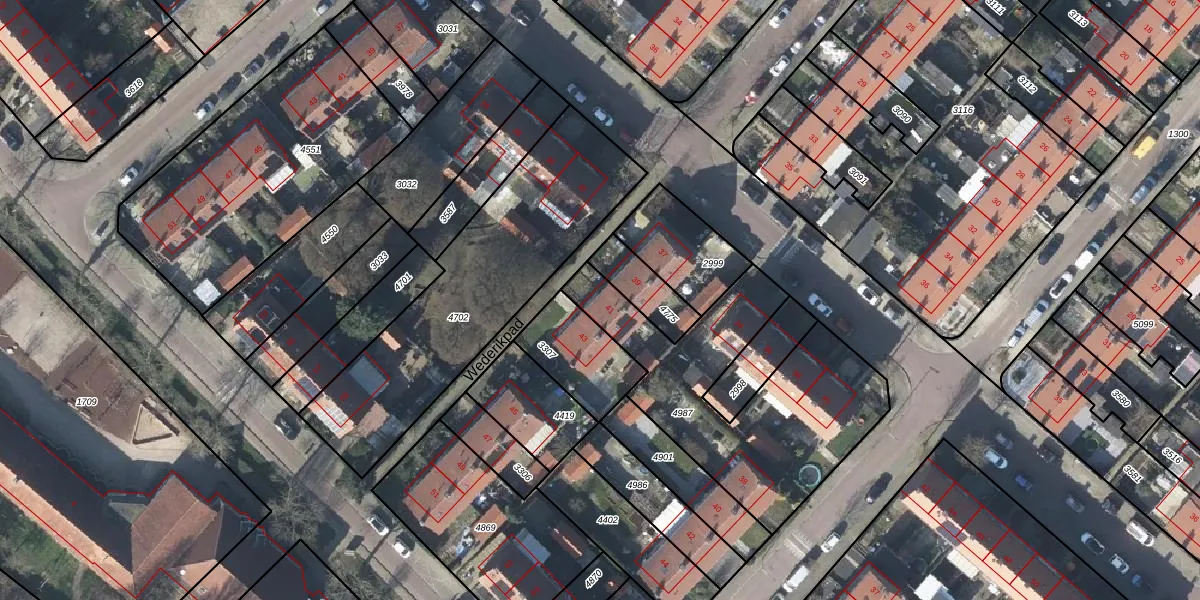 Het perceel waarop Wederikpad 41 staat heeft een oppervlakte van 1029 m². Dit is een zeer groot perceel. De perceeloppervlakte wordt geregistreerd door het Kadaster. Gedetailleerde informatie over de maten van dit perceel kunt u vinden in het rapport Kadastrale kaart met maatvoering van Wederikpad 41.