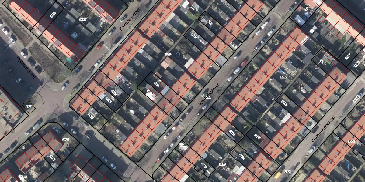 Het perceel waarop Wederikstraat 22 staat heeft een oppervlakte van 5337 m². Dit is een zeer groot perceel. De perceeloppervlakte wordt geregistreerd door het Kadaster. Gedetailleerde informatie over de maten van dit perceel kunt u vinden in het rapport Kadastrale kaart met maatvoering van Wederikstraat 22.