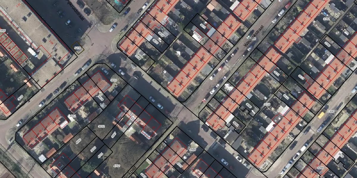 Het perceel waarop Wederikstraat 36 staat heeft een oppervlakte van 5337 m². Dit is een zeer groot perceel. De perceeloppervlakte wordt geregistreerd door het Kadaster. Gedetailleerde informatie over de maten van dit perceel kunt u vinden in het rapport Kadastrale kaart met maatvoering van Wederikstraat 36.