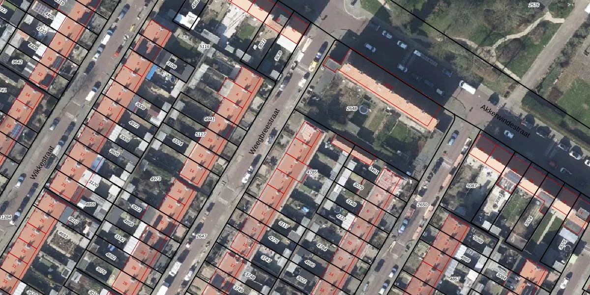 Het perceel waarop Weegbreestraat 3 staat heeft een oppervlakte van 939 m². Dit is een groot perceel. De perceeloppervlakte wordt geregistreerd door het Kadaster. Gedetailleerde informatie over de maten van dit perceel kunt u vinden in het rapport Kadastrale kaart met maatvoering van Weegbreestraat 3.
