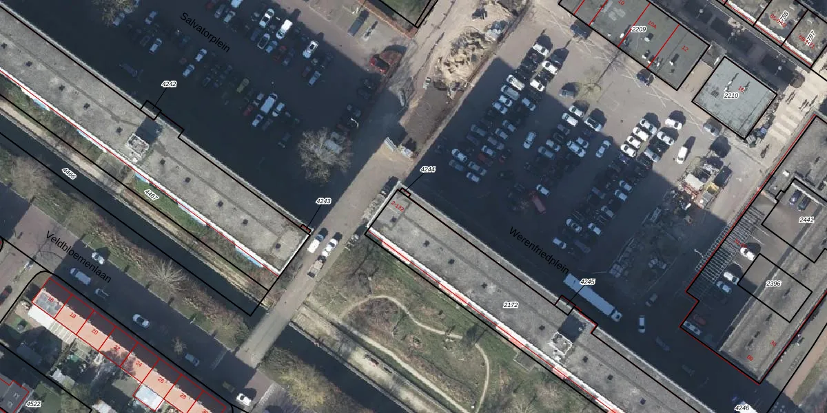 Werenfriedplein 2-B is gelegen op kadastraal perceel AHM01E2172. Deze kadastrale aanduiding is uniek en wordt gebruikt door het Kadaster om eigendomsrechten en andere zakelijke rechten vast te leggen. Het perceel maakt onderdeel uit van de kadastrale gemeente Arnhem.