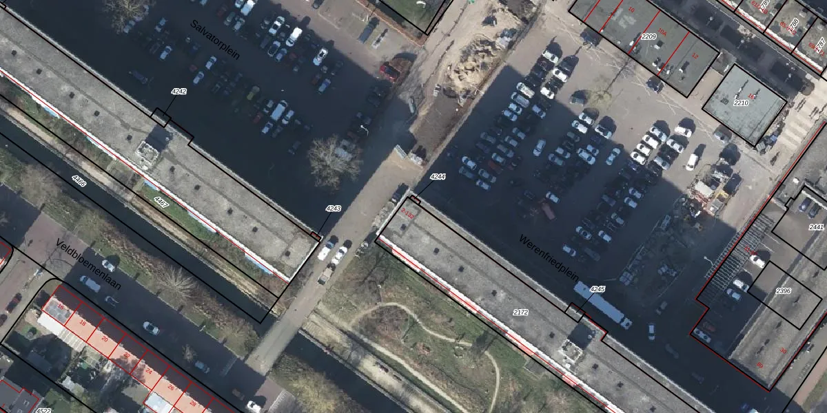Het perceel waarop Werenfriedplein 2-A staat heeft een oppervlakte van 1343 m². Dit is een zeer groot perceel. De perceeloppervlakte wordt geregistreerd door het Kadaster. Gedetailleerde informatie over de maten van dit perceel kunt u vinden in het rapport Kadastrale kaart met maatvoering van Werenfriedplein 2-A.