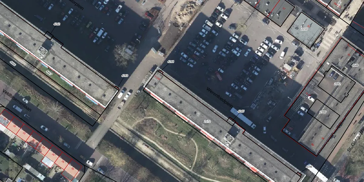 Werenfriedplein 2-F is gelegen op kadastraal perceel AHM01E2172. Deze kadastrale aanduiding is uniek en wordt gebruikt door het Kadaster om eigendomsrechten en andere zakelijke rechten vast te leggen. Het perceel maakt onderdeel uit van de kadastrale gemeente Arnhem.