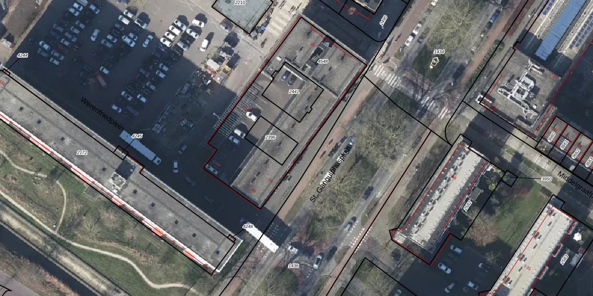 Het perceel waarop Werenfriedplein 71 staat heeft een oppervlakte van 1273 m². Dit is een zeer groot perceel. De perceeloppervlakte wordt geregistreerd door het Kadaster. Gedetailleerde informatie over de maten van dit perceel kunt u vinden in het rapport Kadastrale kaart met maatvoering van Werenfriedplein 71.