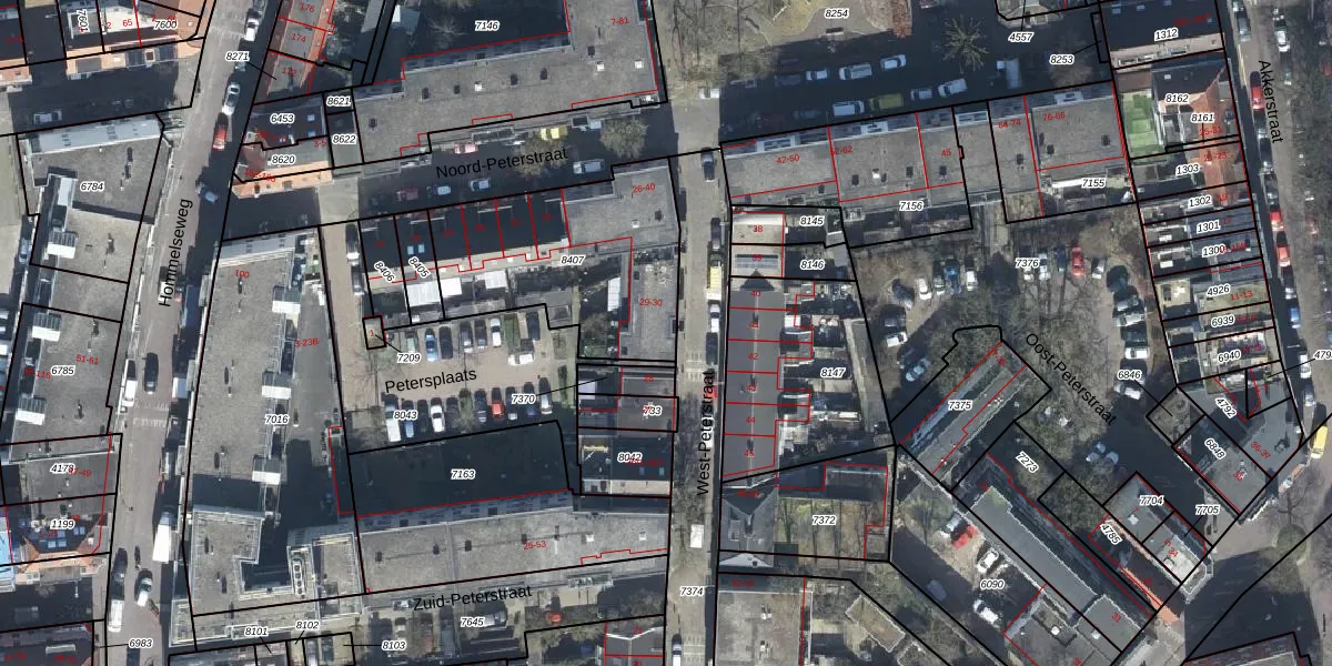 Het perceel waarop West-Peterstraat 29 staat heeft een oppervlakte van 810 m². Dit is een groot perceel. De perceeloppervlakte wordt geregistreerd door het Kadaster. Gedetailleerde informatie over de maten van dit perceel kunt u vinden in het rapport Kadastrale kaart met maatvoering van West-Peterstraat 29.