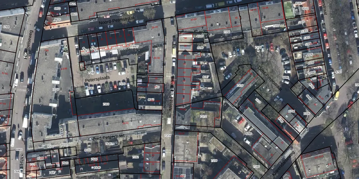Het perceel waarop West-Peterstraat 44 staat heeft een oppervlakte van 627 m². Dit is een groot perceel. De perceeloppervlakte wordt geregistreerd door het Kadaster. Gedetailleerde informatie over de maten van dit perceel kunt u vinden in het rapport Kadastrale kaart met maatvoering van West-Peterstraat 44.