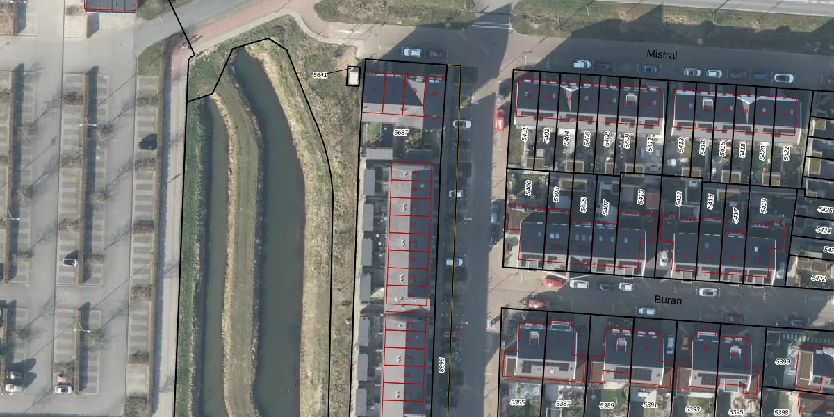 Het perceel waarop Westenwind 44 staat heeft een oppervlakte van 2610 m². Dit is een zeer groot perceel. De perceeloppervlakte wordt geregistreerd door het Kadaster. Gedetailleerde informatie over de maten van dit perceel kunt u vinden in het rapport Kadastrale kaart met maatvoering van Westenwind 44.