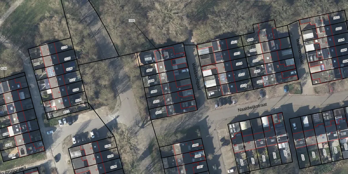 Het perceel waarop Wieldrechtpad 5 staat heeft een oppervlakte van 172 m². Dit is een middelgroot perceel. De perceeloppervlakte wordt geregistreerd door het Kadaster. Gedetailleerde informatie over de maten van dit perceel kunt u vinden in het rapport Kadastrale kaart met maatvoering van Wieldrechtpad 5.