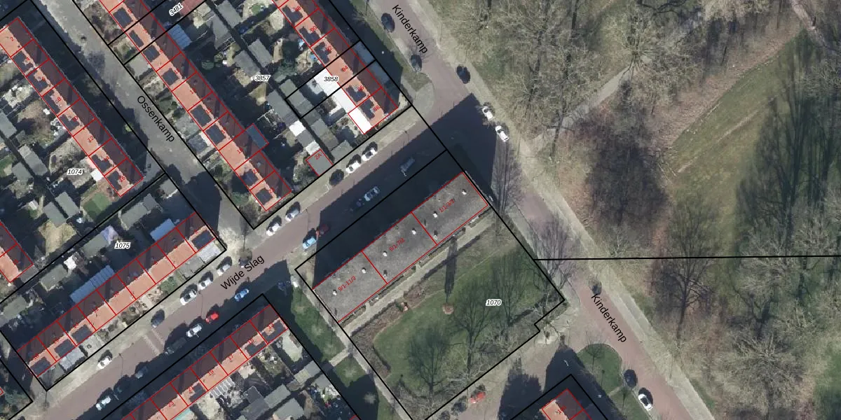 Wijde Slag 1-B is gelegen op kadastraal perceel AHM01T1070. Deze kadastrale aanduiding is uniek en wordt gebruikt door het Kadaster om eigendomsrechten en andere zakelijke rechten vast te leggen. Het perceel maakt onderdeel uit van de kadastrale gemeente Arnhem.