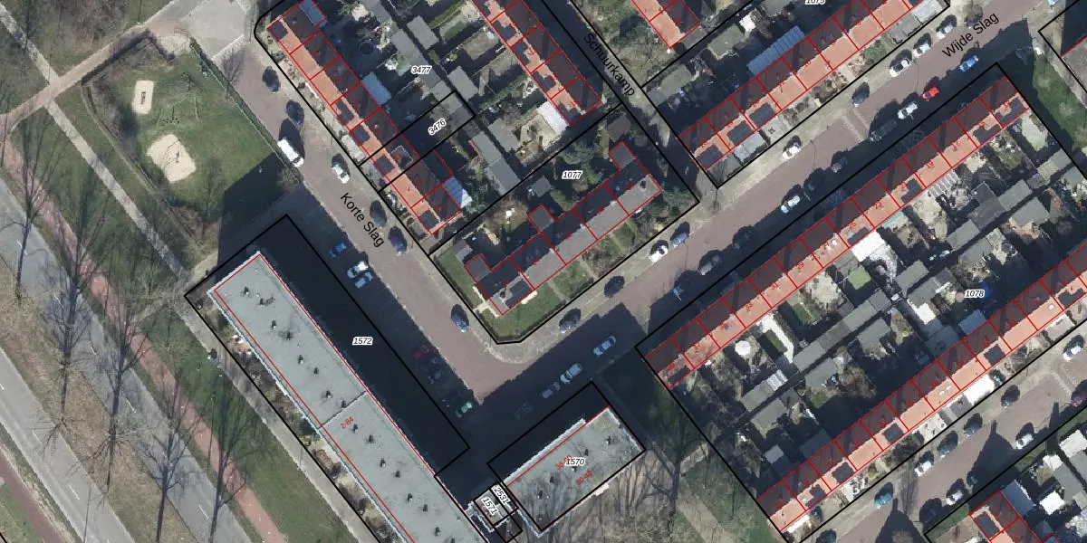 Het perceel waarop Wijde Slag 24 staat heeft een oppervlakte van 1040 m². Dit is een zeer groot perceel. De perceeloppervlakte wordt geregistreerd door het Kadaster. Gedetailleerde informatie over de maten van dit perceel kunt u vinden in het rapport Kadastrale kaart met maatvoering van Wijde Slag 24.
