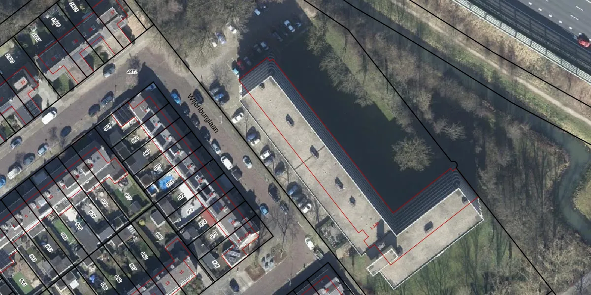 Het perceel waarop Wijenburglaan 1-J staat heeft een oppervlakte van 8300 m². Dit is een zeer groot perceel. De perceeloppervlakte wordt geregistreerd door het Kadaster. Gedetailleerde informatie over de maten van dit perceel kunt u vinden in het rapport Kadastrale kaart met maatvoering van Wijenburglaan 1-J.