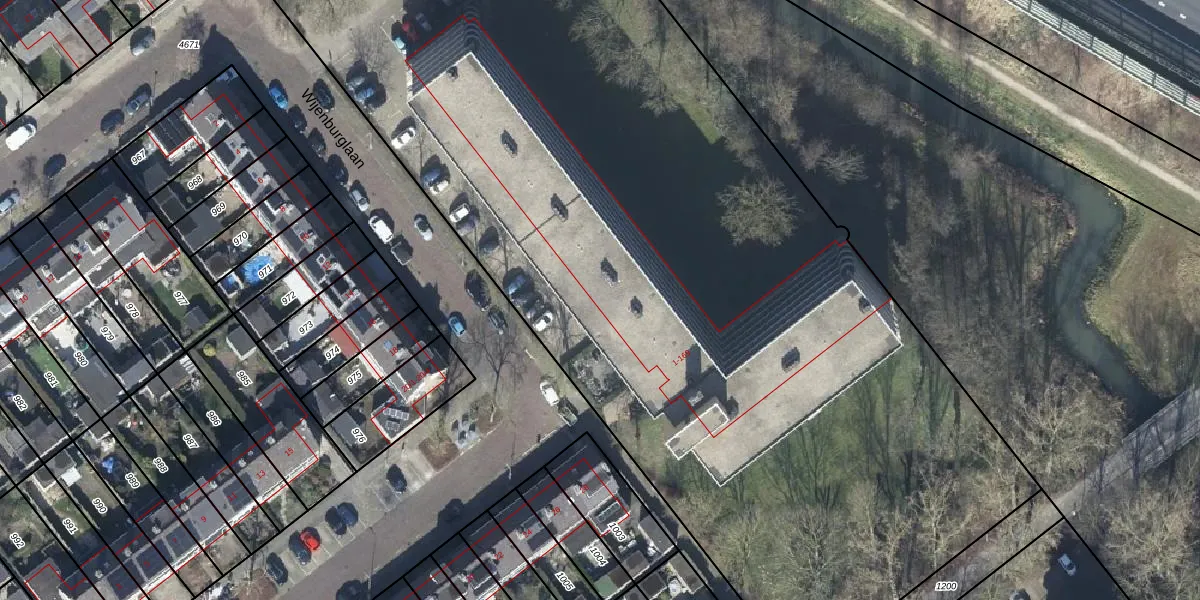 Het perceel waarop Wijenburglaan 1-Q staat heeft een oppervlakte van 8300 m². Dit is een zeer groot perceel. De perceeloppervlakte wordt geregistreerd door het Kadaster. Gedetailleerde informatie over de maten van dit perceel kunt u vinden in het rapport Kadastrale kaart met maatvoering van Wijenburglaan 1-Q.