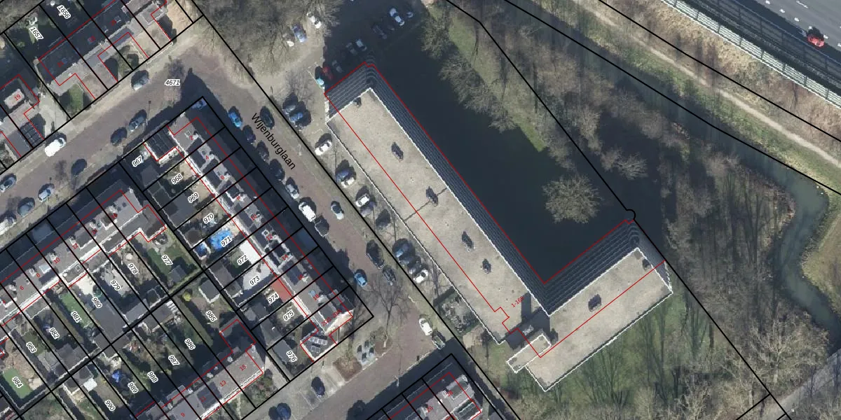 Het perceel waarop Wijenburglaan 1-L staat heeft een oppervlakte van 8300 m². Dit is een zeer groot perceel. De perceeloppervlakte wordt geregistreerd door het Kadaster. Gedetailleerde informatie over de maten van dit perceel kunt u vinden in het rapport Kadastrale kaart met maatvoering van Wijenburglaan 1-L.