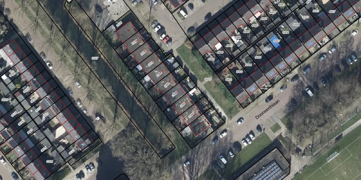 Gebruik de zoekbalk of klik op een perceel voor informatie over de adressen binnen dit perceel.