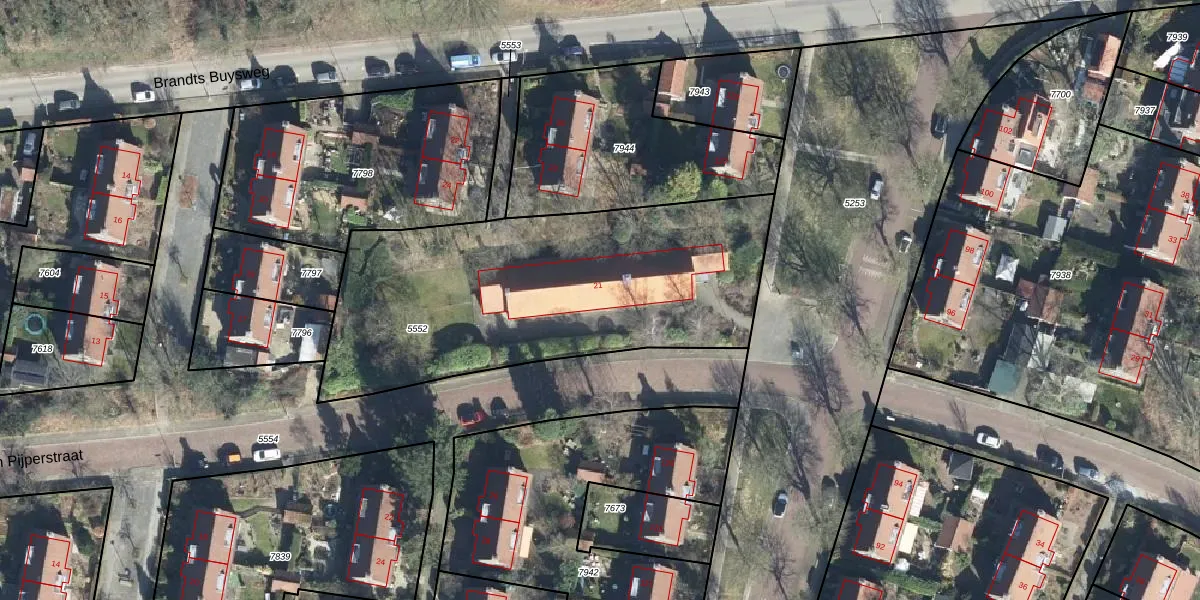 Het perceel waarop Willem Pijperstraat 21 staat heeft een oppervlakte van 1800 m². Dit is een zeer groot perceel. De perceeloppervlakte wordt geregistreerd door het Kadaster. Gedetailleerde informatie over de maten van dit perceel kunt u vinden in het rapport Kadastrale kaart met maatvoering van Willem Pijperstraat 21.