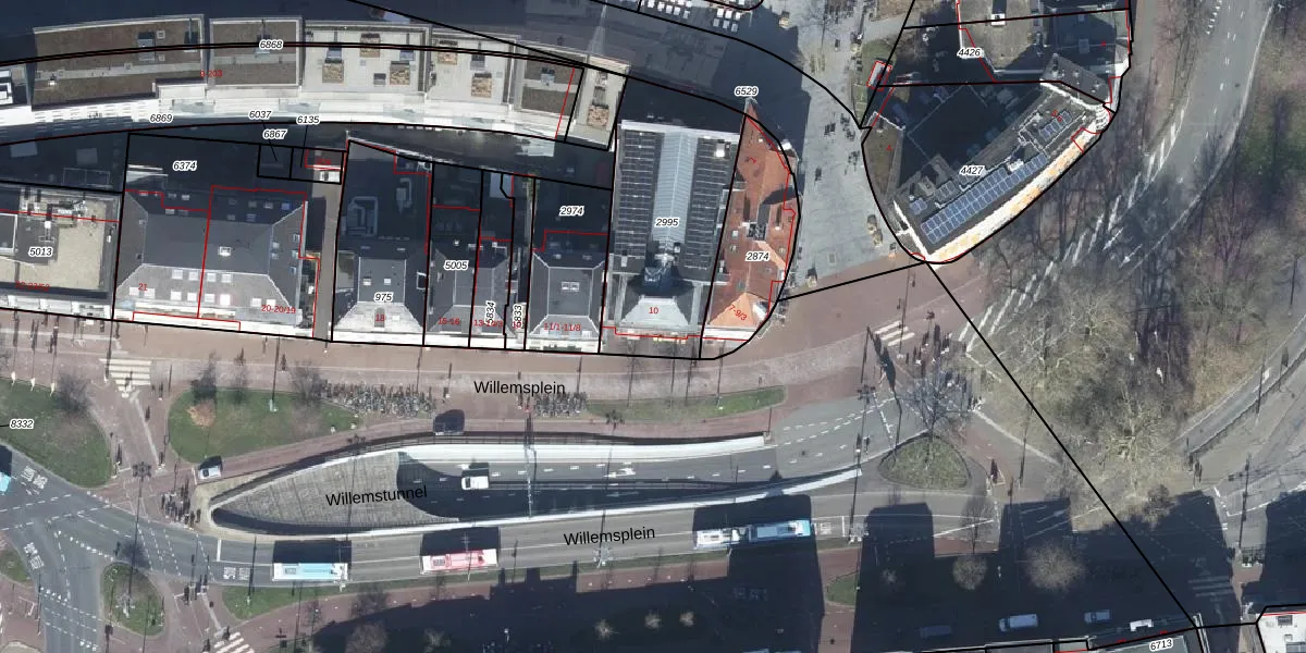 Het perceel waarop Willemsplein 10 staat heeft een oppervlakte van 710 m². Dit is een groot perceel. De perceeloppervlakte wordt geregistreerd door het Kadaster. Gedetailleerde informatie over de maten van dit perceel kunt u vinden in het rapport Kadastrale kaart met maatvoering van Willemsplein 10.