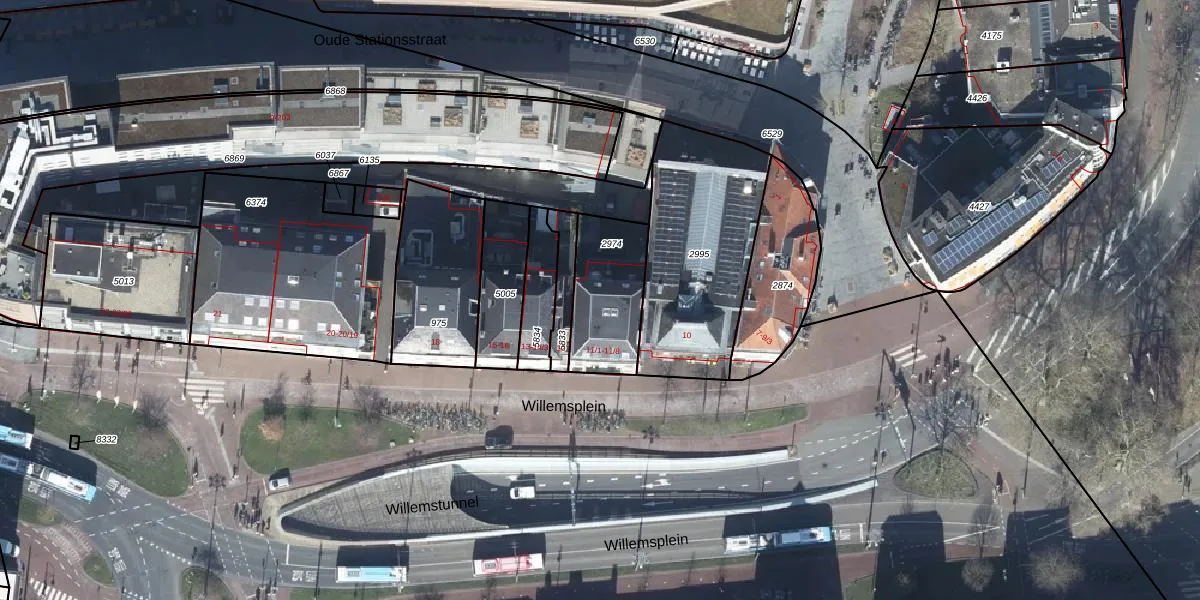 Het perceel waarop Willemsplein 11-6 staat heeft een oppervlakte van 310 m². Dit is een groot perceel. De perceeloppervlakte wordt geregistreerd door het Kadaster. Gedetailleerde informatie over de maten van dit perceel kunt u vinden in het rapport Kadastrale kaart met maatvoering van Willemsplein 11-6.