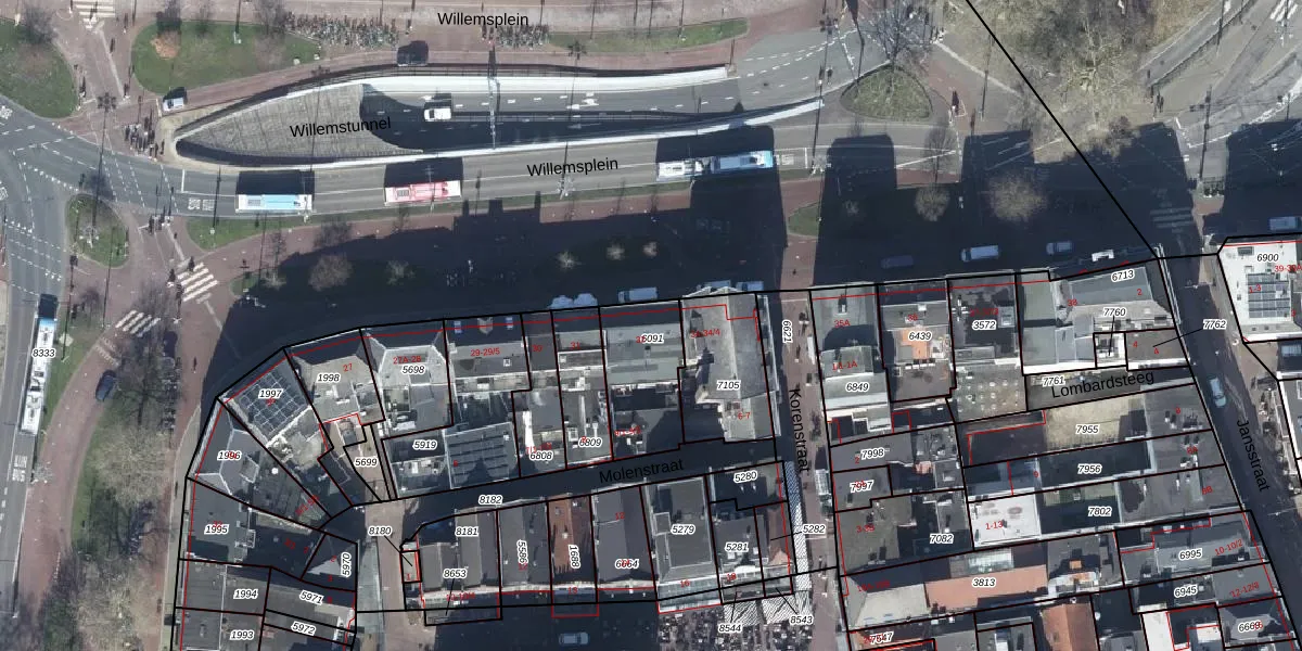 Het perceel waarop Willemsplein 32 staat heeft een oppervlakte van 267 m². Dit is een middelgroot perceel. De perceeloppervlakte wordt geregistreerd door het Kadaster. Gedetailleerde informatie over de maten van dit perceel kunt u vinden in het rapport Kadastrale kaart met maatvoering van Willemsplein 32.
