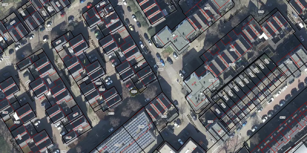 Gebruik de zoekbalk of klik op een perceel voor informatie over de adressen binnen dit perceel.