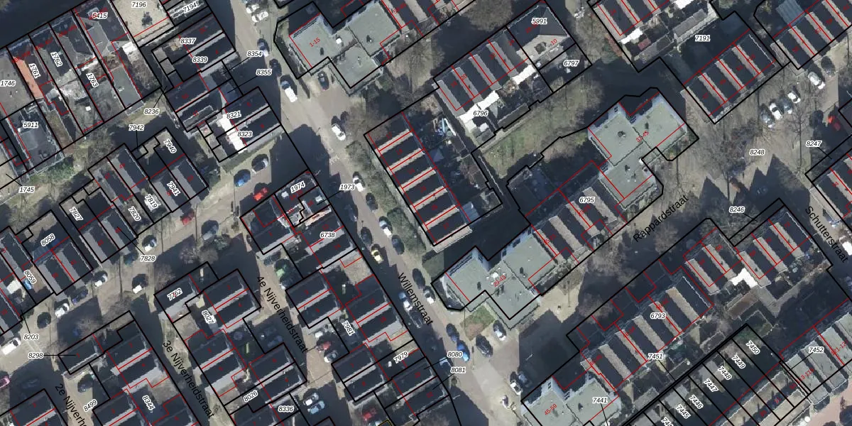 Het perceel waarop Willemstraat 25 staat heeft een oppervlakte van 1010 m². Dit is een zeer groot perceel. De perceeloppervlakte wordt geregistreerd door het Kadaster. Gedetailleerde informatie over de maten van dit perceel kunt u vinden in het rapport Kadastrale kaart met maatvoering van Willemstraat 25.