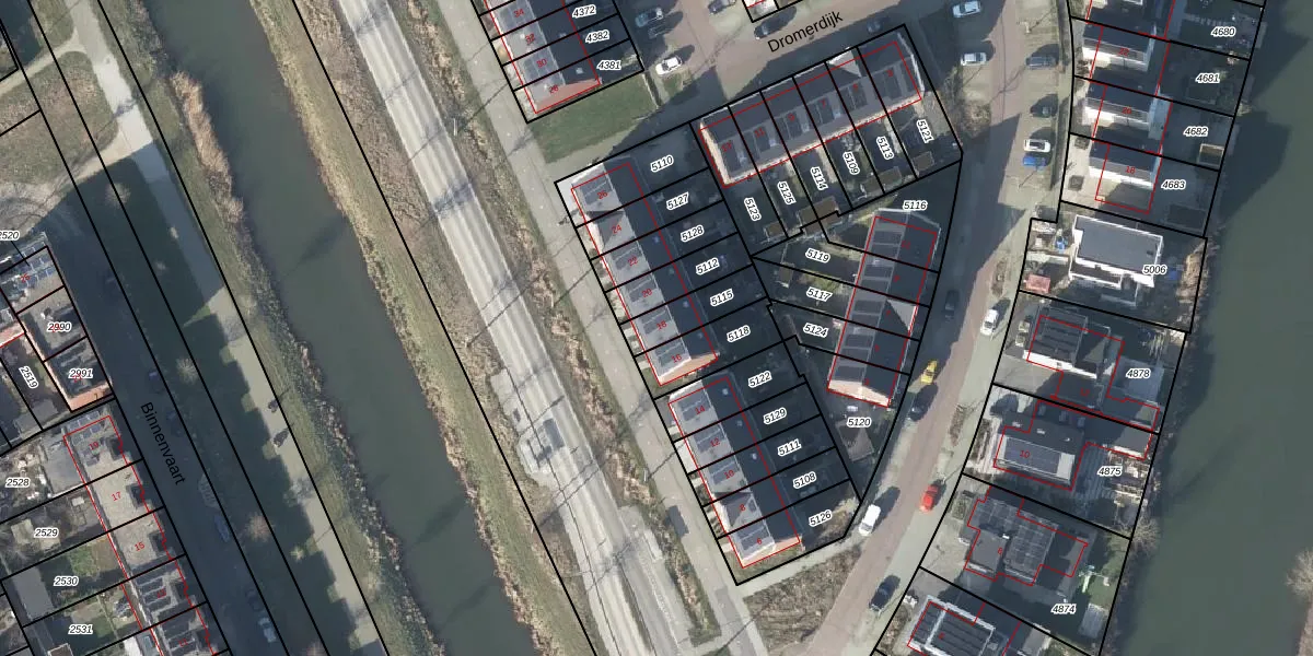Gebruik de zoekbalk of klik op een perceel voor informatie over de adressen binnen dit perceel.