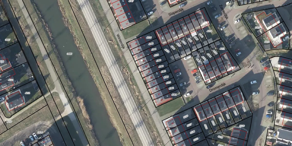 Het perceel waarop Winterdijk 38 staat heeft een oppervlakte van 85 m². Dit is een klein perceel. De perceeloppervlakte wordt geregistreerd door het Kadaster. Gedetailleerde informatie over de maten van dit perceel kunt u vinden in het rapport Kadastrale kaart met maatvoering van Winterdijk 38.