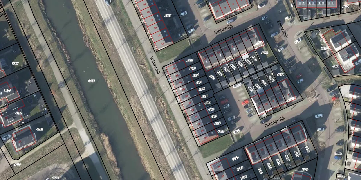 Gebruik de zoekbalk of klik op een perceel voor informatie over de adressen binnen dit perceel.